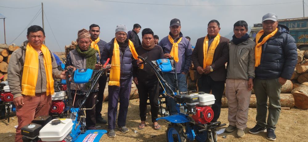 यस्तै पारिजात कृषि समुहलाई मिनिटिलर पेट्रोल १७ थान, मिनिटिलर डिजल २ थान, स्प्रे पम्प ४० थान, युभी प्लास्टिक एक सय माइक्रोनको २ रोल, मल्चिङ प्लास्टिक २० रोल, बायोटिक चुन २ सय ८० केजी, हिलटेक एक हजार लिटरको २ थान, डिजिटल काटा ३ थान, स्प्रीङकल ठुलो सानो १२० थान, एचडिइपी २० एमएमको पाइप ३ सय ४ मिटर र एप्रोन सेट ३० थान प्रदान गरिएको हो ।