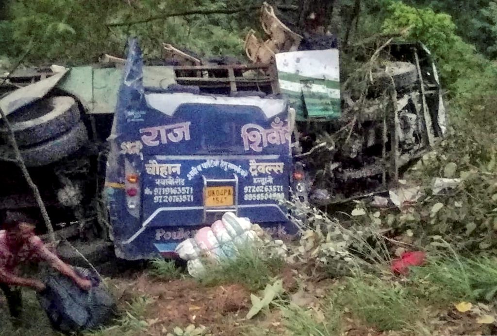 २८ तीर्थयात्री बोकेर मध्यप्रदेशको पाना जिल्लाबाट उत्तराखण्डको यमुनोत्री धाम जाँदै गरेको बस दुर्घटनामा परेको हो । बसमा चालक र सहचालकसहित ३० जना रहेका बीबीसी हिन्दीले जनाएको छ ।