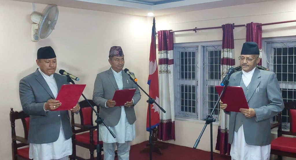 नेपाली कांग्रेसबाट संसदीय दलका नेता बहादुरसिं लामा र तिर्थ लामा मन्त्री बनेका छन् । मन्त्रीद्वयले प्रदेश प्रमुख यादव चन्द्र शर्माबाट पद तथा गोपनीयताको शपथ लिएका छन् । सरकारमा कांग्रेसको नेतृत्व गर्दै बहादुरसिं आर्थिक मामिला तथा योजनामन्त्री र तिर्थ लामा खानेपानी, सिंचाई तथा ऊर्जामन्त्री बनेका छन् ।