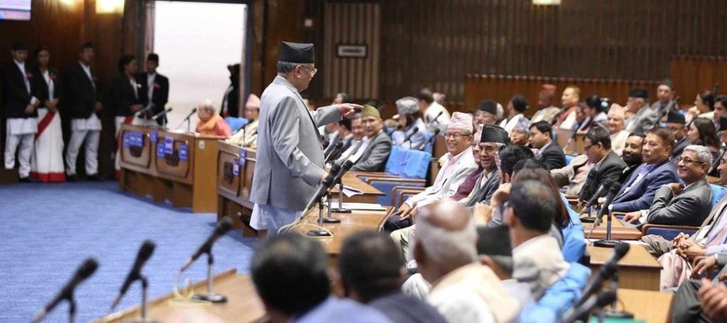 संविधानको धारा १०० को उपधारा (२) बमोजिम प्रधानमन्त्रीले प्रतिनिधित्व गर्ने दल विभाजित भएमा वा सरकारमा सहभागी दलले आफ्नो समर्थन फिर्ता लिएमा ३० दिनभित्र प्रधानमन्त्रीले विश्वासको मतका लागि प्रतिनिधिसभासमक्ष प्रस्ताव राख्नुपर्ने व्यवस्था छ । सोहीअनुसार प्रधानमन्त्रीले शुक्रबार संसदको फेस गरेका हुन् ।