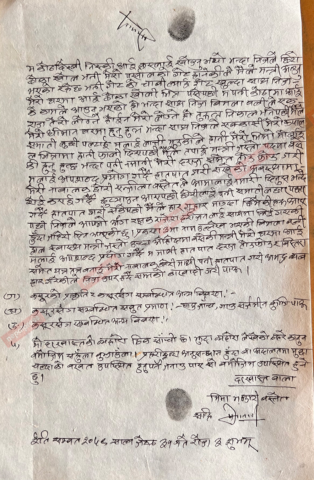 ‘राज्यमन्त्रीविरुद्ध किटानी जाहेरी हामीकहाँ आएको छ’, स्वाँरले नेपालप्रेससँग भने, ‘जिल्लाको आदेशअनुसार किटानी जाहेरी जिप्रका पठाउँदैछौँ ।’