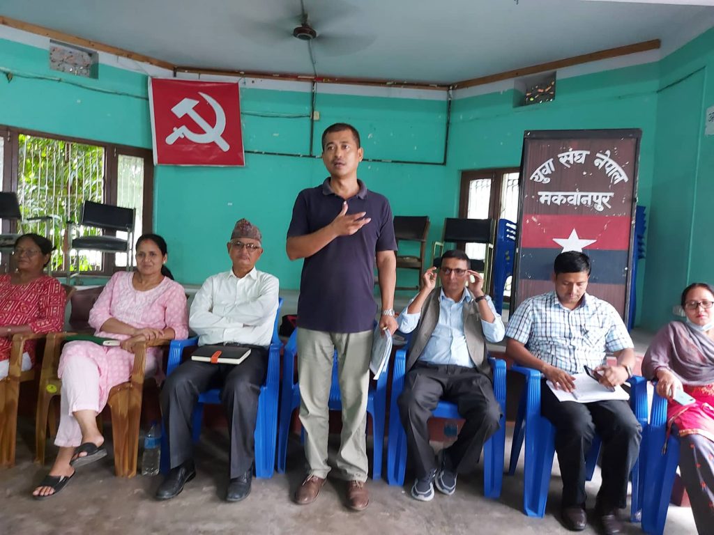 जिल्ला अध्यक्ष एकालाल श्रेष्ठको अध्यक्षतामा र केन्द्रीय सदस्य तथा मकवानपुर ईन्चार्ज रामेश्वर रानाको प्रमुख आथित्यतामा बसेको बैठकले जिल्लाबाट प्रत्यक्ष र समानुपातिकतर्फको प्रतिनिधिसभा र प्रदेशसभा सदस्यको उम्मेद्वारको अन्तिम सिफारिसको लागि १९ गते जिल्ला सचिवालय बैठक र २० गते जिल्ला कमिटीको पूर्ण बैठक बस्ने भएको जिल्ला कमिटीका सचिव नवीन सिग्देलले बताए ।
