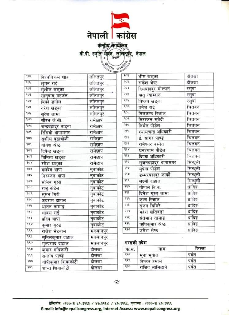 मकवानपुरबाट राजेश भेटवाल, सुनिल दाहाल र गुरुप्रसाद दाहाल मनोनित भएका हुन । २०७८ साल चैत ९ गते विद्वान गुरुङलाई तरुण दलको अध्यक्ष तोकेको नेपाली कांग्रेसले बुधबार सातै प्रदेशबाट सदस्यहरु मनोनयन गरेको थियो ।
