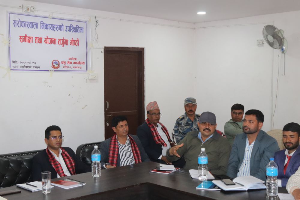 हेटौँडा । पशु सेवा कार्यालय हेटौँडा मकवानपुरले समीक्षा तथा योजना तर्जुमा गोष्ठीको आयोजना गरेको छ । सरोकारवाला निकायहरुको उपस्थितीमा मङ्गलवार समीक्षा कार्यक्रम गरिएको हो ।