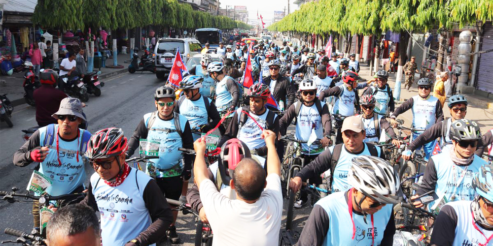 हेटौँडा । पर्यटन प्रवर्धनका लागि हेटौँडादेखि चितवनको सौराहासम्म साइकल यात्रा गरिएको छ । शुक्रवार बिहान बागमती प्रदेश सरकारका संस्कृति तथा पर्यटन मन्त्री विमल ठकुरीले हेटौँडाको बुद्ध चोकमा साइकल चढेर कार्यक्रमको शुभारम्भ गरेका हुन ।