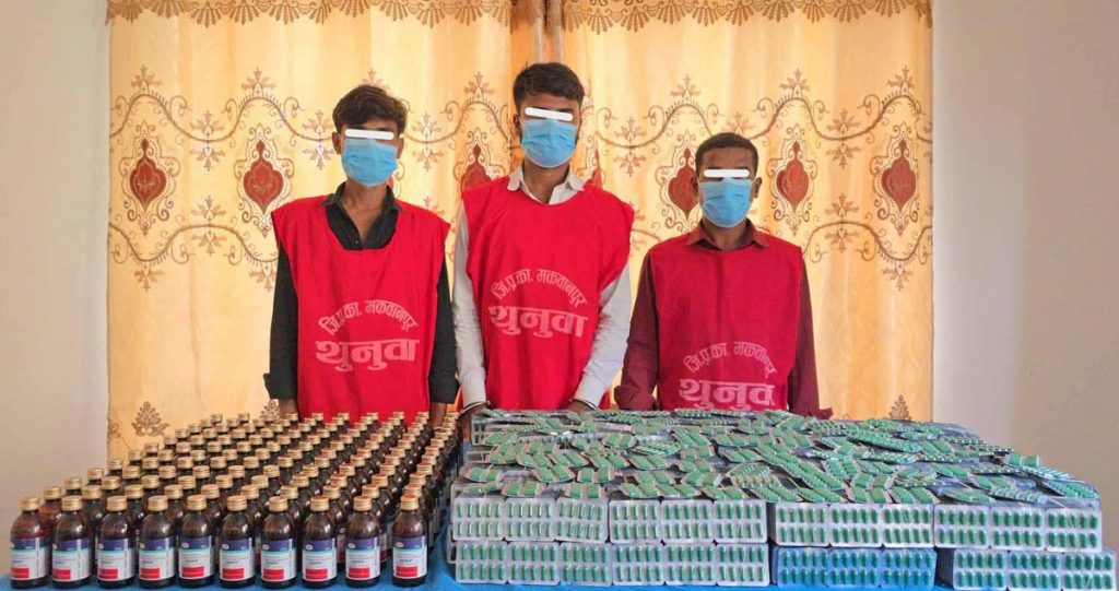 प्रहरीले उनीहरूको साथबाट लागुऔषध ट्रामाडोल २५ हजार ४५५ क्याप्सुल र अनरेक्स १२० बोतल बरामद गरेको छ। मकवानपुर प्रहरी प्रवक्ता डिएसपी श्यामु अर्यालका अनुसार हेटौँडा उपमहानगरपालिका– १५ स्थित रातोमाटेमा चेकजाँचका क्रममा उक्त परिमाणको लागुऔषधसहित उनीहरू पक्राउ परेका हुन्।
