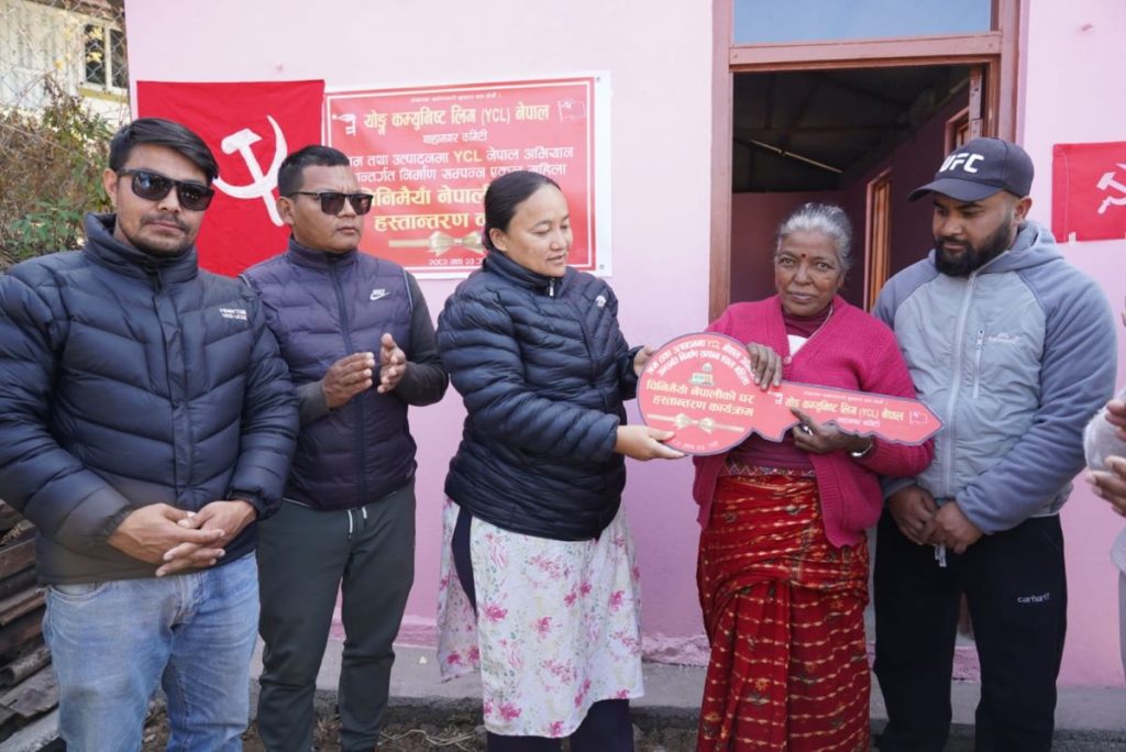“श्रम तथा उत्पादनमा वाइसीएल अभियान” अन्तर्गत २०८२ साउन १० गते बिहान १० बजेदेखि श्रमदान कार्यक्रममार्फत घर पुनःनिर्माण कार्यको प्रारम्भिक चरण सुरु गरिएको थियो । नयाँ घर पाएपछि एकल महिला चिनीमैयाँ नेपाली खुसी भइन् । उनले घर निर्माण गरिदिएकोमा धन्यवाद दिइन् ।
