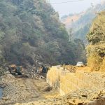 बाढीले क्षतिग्रस्त बनाएको सडकलाई खोलाबाट बचाउन पर्खाल लगाइँदै