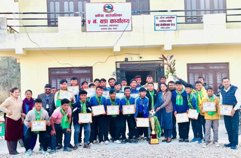 हेटौंडा । मकवानपुरको बकैया गाउँपालिकामा आयोजित पाँचौं बकैया कप फुटबल प्रतियोगितामा उपाधि चुम्न सफल खेलाडीहरुलाई सम्मान गरिएको छ ।