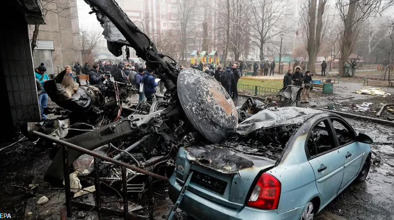 एजेन्सी । युक्रेनको राजधानी किएभको बाहिरी भेगमा रहेको शिशु पाठशाला नजिक बुधवार भएको हेलिकप्टर दुर्घटनमा परि युक्रेनका आन्तरिक मामिला मन्त्रीसहित १८ जनाको ज्यान गएको छ । दुर्घटनामा तीन जना बालबालिकाको पनि ज्यान गएको अधिकारीहरूले बताएका छन् ।