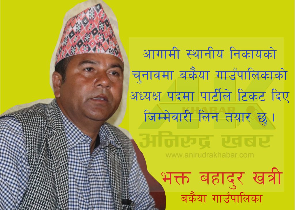 आगामी स्थानीय निकायको चुनावमा बकैया गाउँपालिकाको अध्यक्ष पदका आकाँक्षी भक्तबहादुर खत्रीका यस्ता छन कार्य योजना