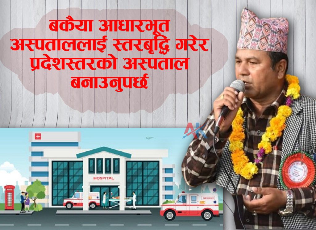 हेटौंडा । पूर्वी मकवानपुरको बकैयामा प्रदेशस्तरको अस्पताल बनाउन माग गरिएको छ । बकैया गाउँपालिका उपाध्यक्ष एवम् माओवादी केन्द्र बकैया अध्यक्ष भक्त बहादुर खत्रीले बकैया आधारभूत अस्पताललाई स्तरबृद्धि गरेर प्रदेशस्तरको अस्पताल बनाउन माग गरेका हुन् ।