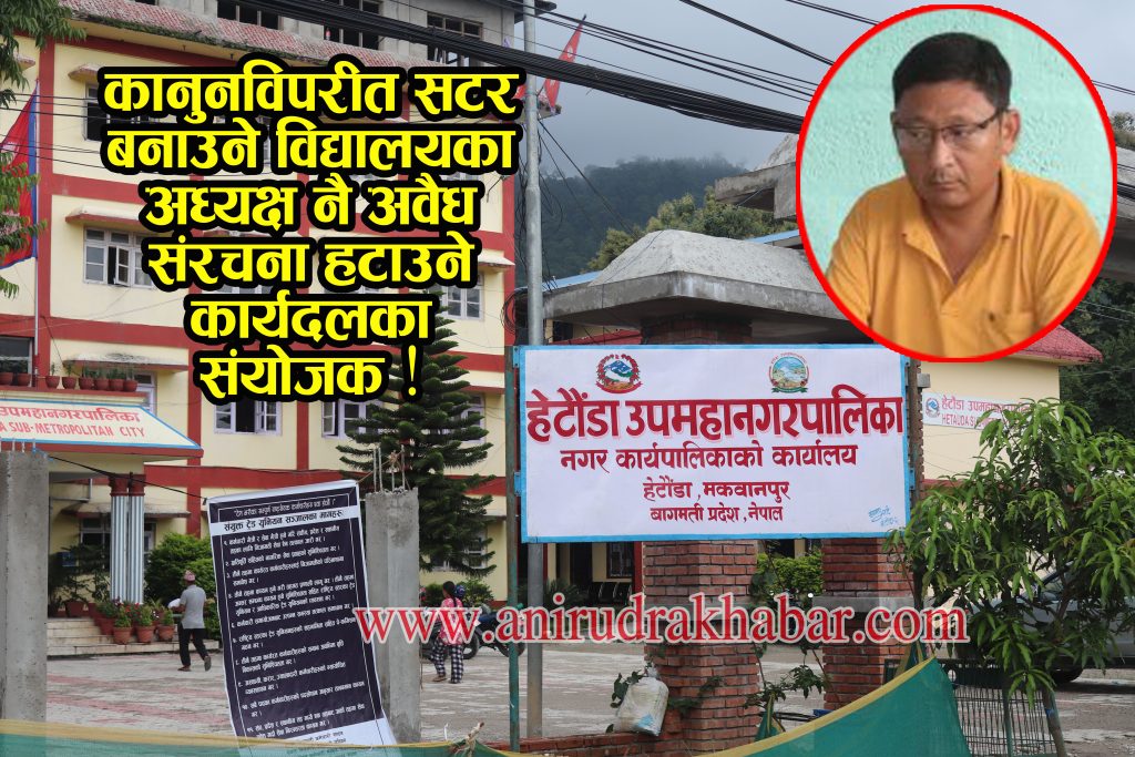 हेटौंडा । व्यापारिक दृष्टिकोणले हेटौँडाको मुटु मानिने पारिजातपथ र भैरव रोडतर्फ अवैध रूपमा सटर निर्माण गर्ने विद्यालयका अध्यक्षलाई उपमहानगरपालिकाले अवैध संरचना हटाउने कार्यदलकै संयोजक बनाएको छ ।