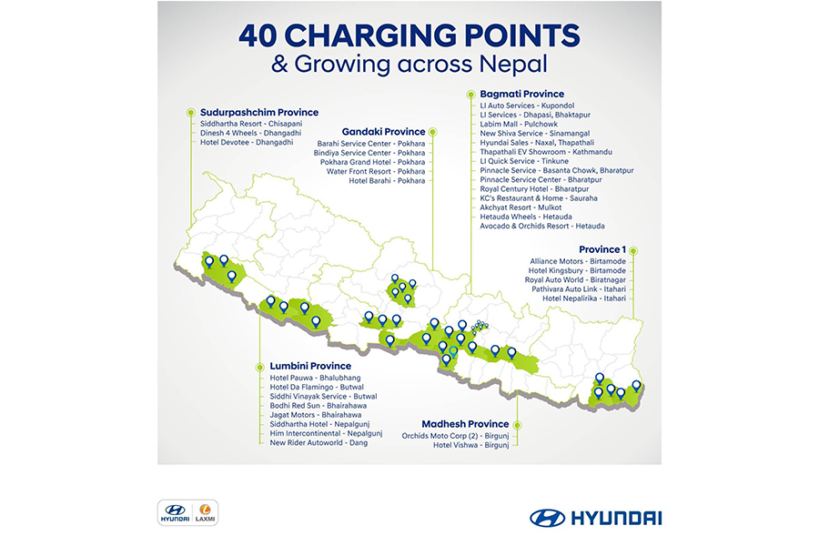 चार्जिङ स्टेशन विस्तार भएसँगै चालकहरुलाई ढुक्क भएर यात्रा गर्न सहयोग पुग्ने विश्वास कम्पनीले लिएको छ । हुन्डाईका चार्जिङ स्टेशनहरु मोवाइल फोन चार्ज गरे जतिकै सजिलोसँग गाडी चार्ज गर्न सकिन्छ । पहिलो चरणको ४० चार्जिङ स्टेशन स्थापना गर्न सफल भइसकेको भन्दै कम्पनीले निकट भविष्यमै अरु नयाँ स्थानमा पनि चार्जिङ स्टेशन विस्तार गर्ने लक्ष्य राखेको छ ।