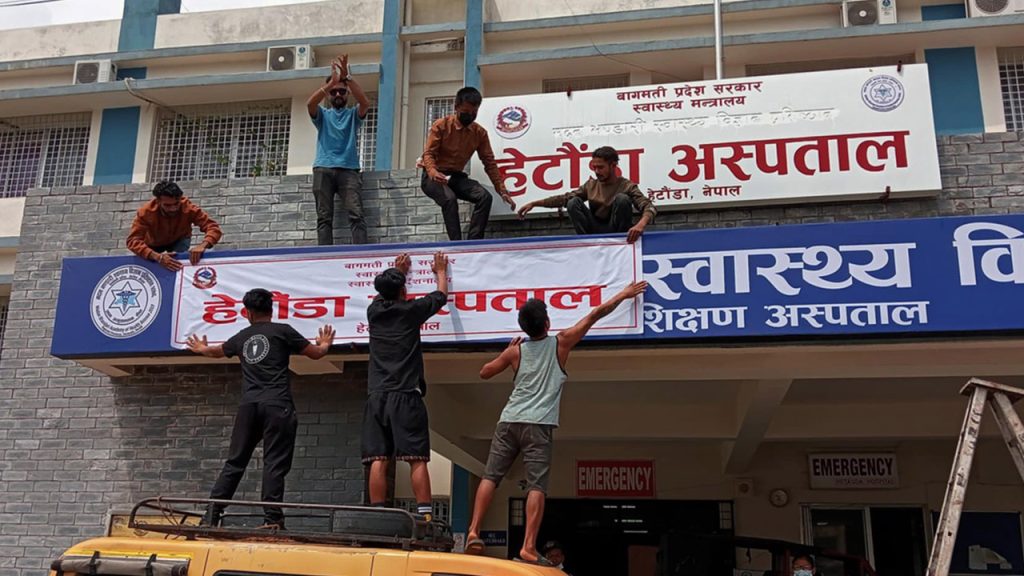 गत चैत ३१ मा हेटौँडा अस्पताललाई प्रतिष्ठानमा गाभ्न नहुने माग गर्दै उनीहरूले अस्पतालको बोर्ड तोडमोड गरेका थिए। उनीहरूले अस्पतालको बोर्डबाट प्रतिष्ठानको नाम हटाएर नयाँ बोर्डसमेत टाँसेका थिए। सो घटनालगत्तै प्रतिष्ठानले घटनामा संलग्नलाई कारबाही गर्न माग गर्दै विज्ञप्ति जारी गरेको थियो।