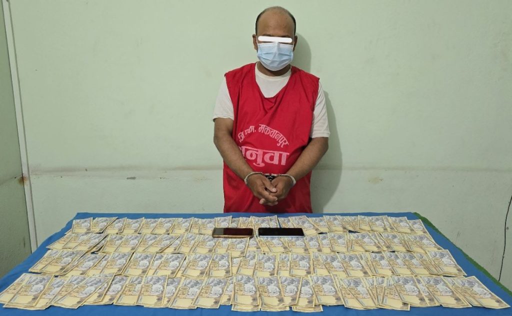प्रवक्ता अर्यालका अनुसार प्रहरी चौकी रातोमाटेमा खटिएको प्रहरी टोलीले शंका लागेपछि उनको शरीर र झोला जाँच गर्दा झोलाभित्र लुकाएर राखिएको अवस्थामा ५०० दरका १८६ थान (९३ हजारबराबर) नक्कली नोट फेला परेको हो।