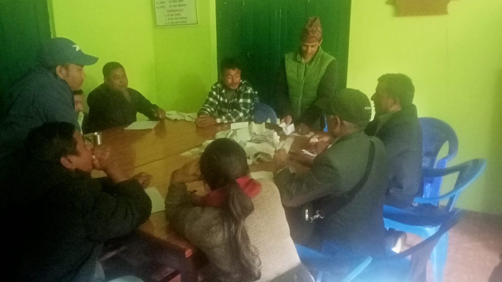 समूहको उपाध्यमा बलराम हुमागाई, सचिवमा सुमित्रा पाख्रिन, सहसचिवमा लक्ष्मी तिमल्सिना र कोषाध्यक्षमा शान्ति घलान निर्विरोध निर्वाचित भएका छन । यसैगरी सदस्यहरुमा लक्ष्मीमाया भुलुन, धनमाया महर्जन, शान्ति गोले, श्रीकृष्ण तिमल्सिना, पञ्च बहादुर परियार र ज्योति सुवेदी चयन भएका छन । निर्वाचन सम्पन्न गर्न सामुदायिक वन उपभोक्ता महासंघ, मकवानपुरका कोषाध्यक्ष बलराम अधिकारी संयोजक भोजराज चापागाई र बालकृष्ण तिमल्सिना सदस्य रहेको ३ सदस्यीय निर्वाचन समिति गठन गरिएको थियो ।